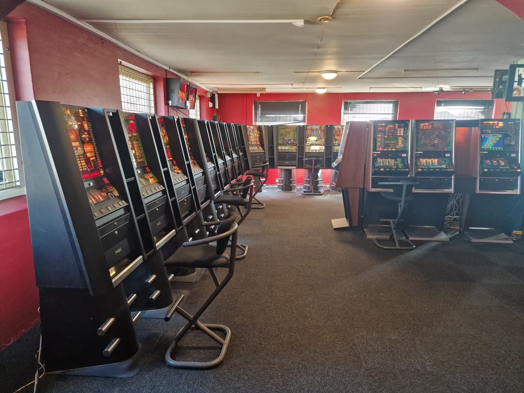 Dejlig stor flot Spillehal med 3 stk rygekabine med 60 spilleautomater. 8 stk Spilhuset maskiner plus Multimaskiner fra Compu-game med de mest populære spil med masser af 1 kr. spil også masser af de gamle DAE maskiner som Gladitor, Mount Everest, Robot og den Røde Baron.